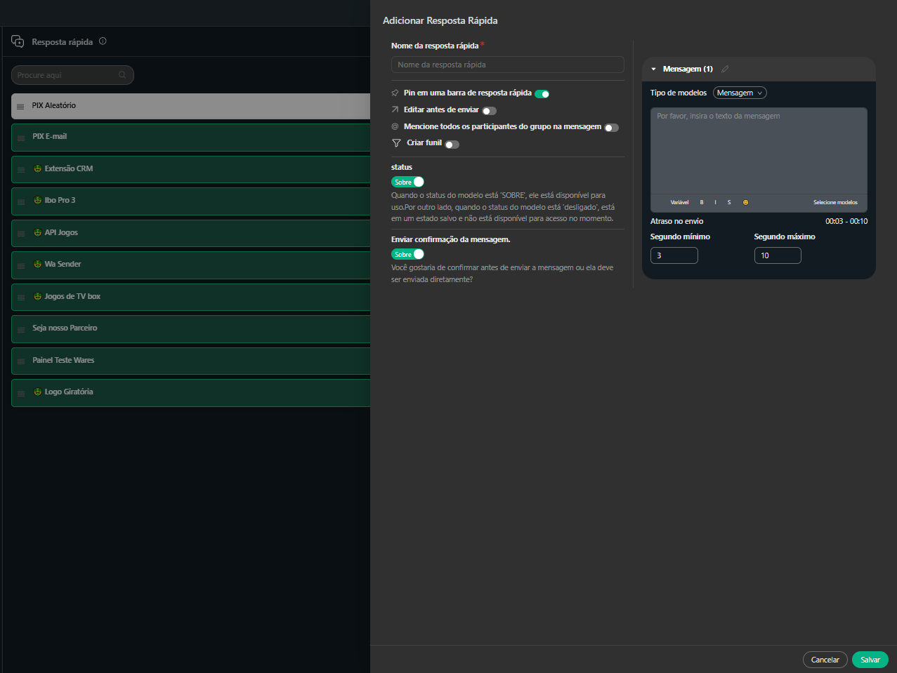 ✅ Respostas rápidas – Atenda clientes instantaneamente com mensagens salvas.