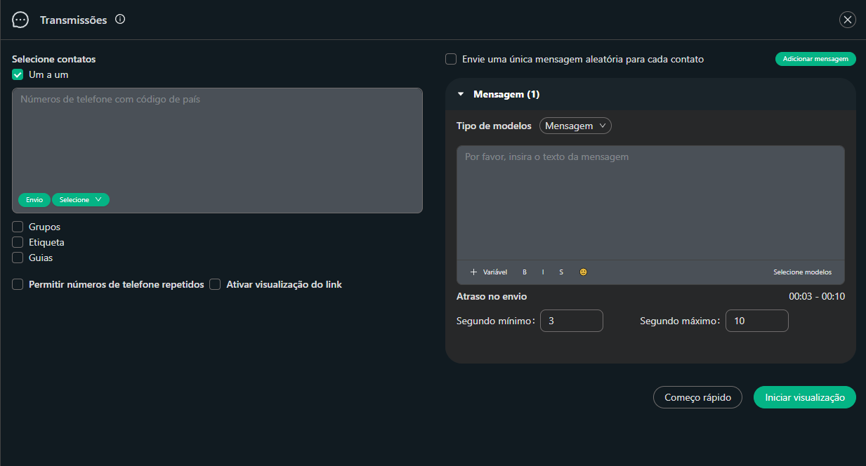 ✅ Transmissões rápidas – Envie mensagens em massa sem complicação.
