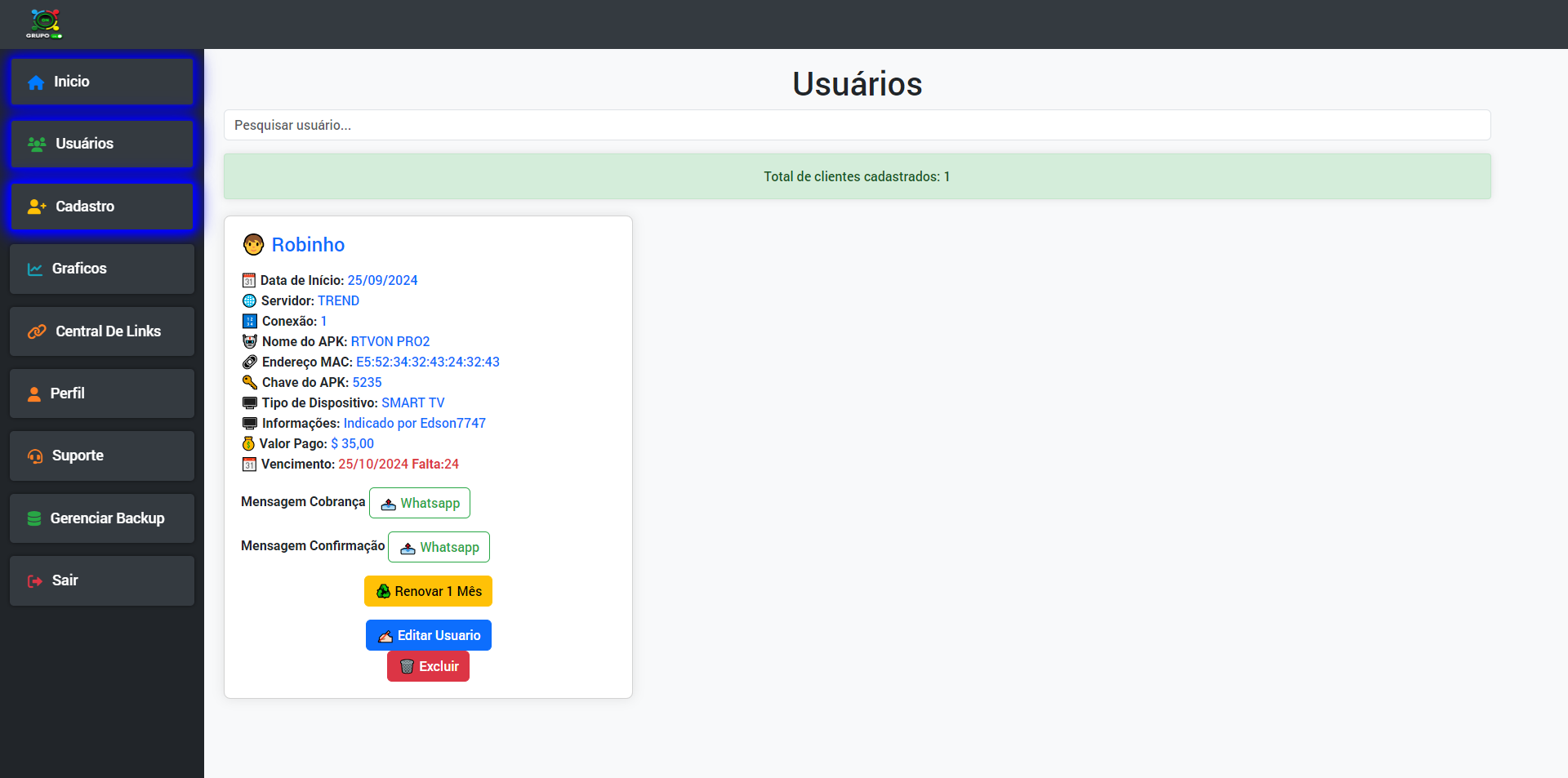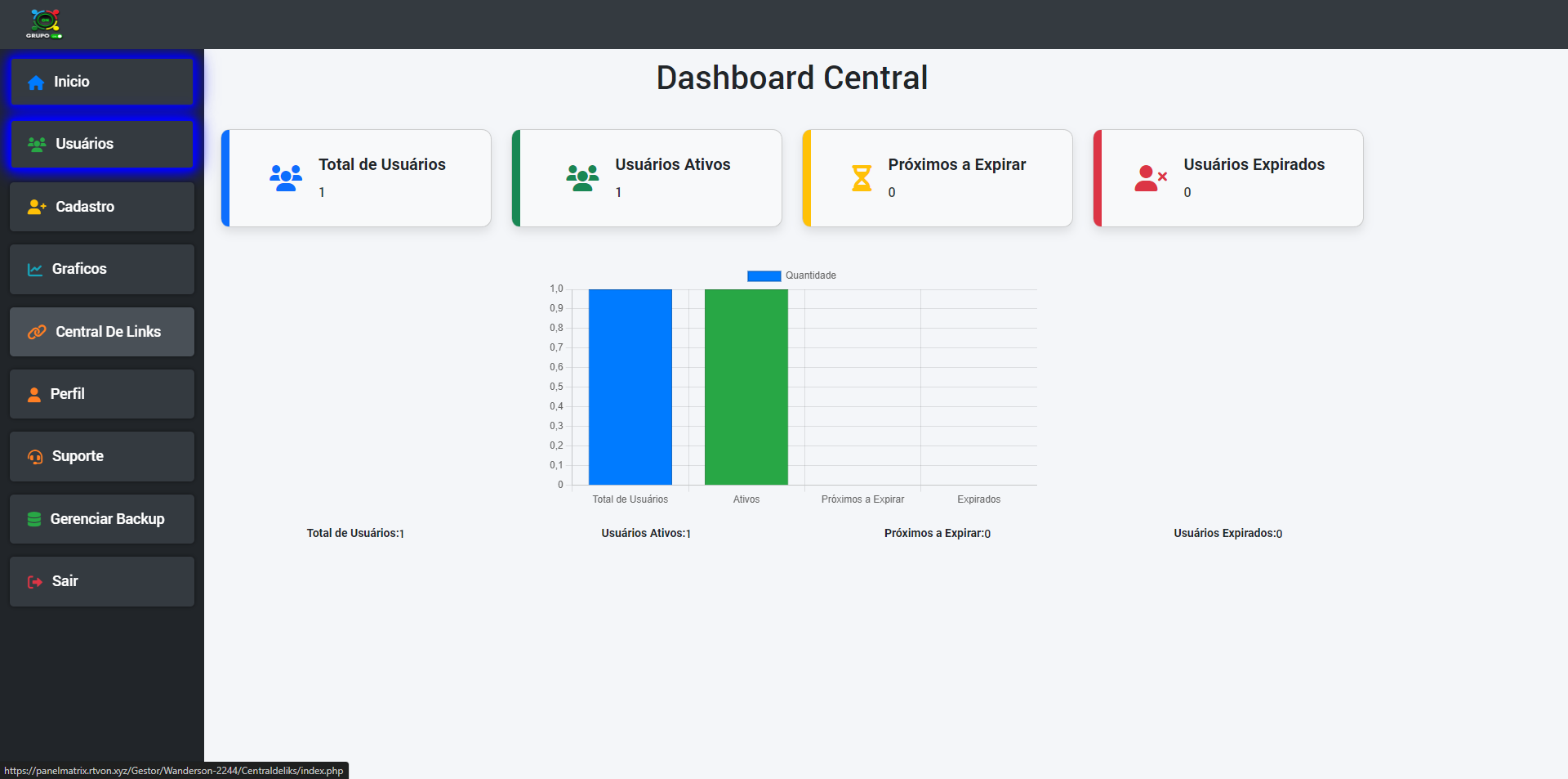 ✅ Gráficos de usuários ativos e vencidos