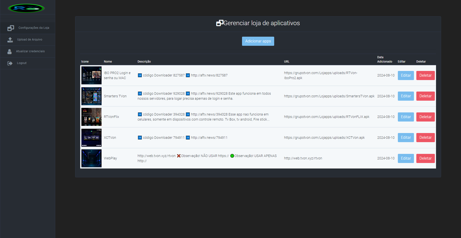 ✅ Link da loja online com seus apps